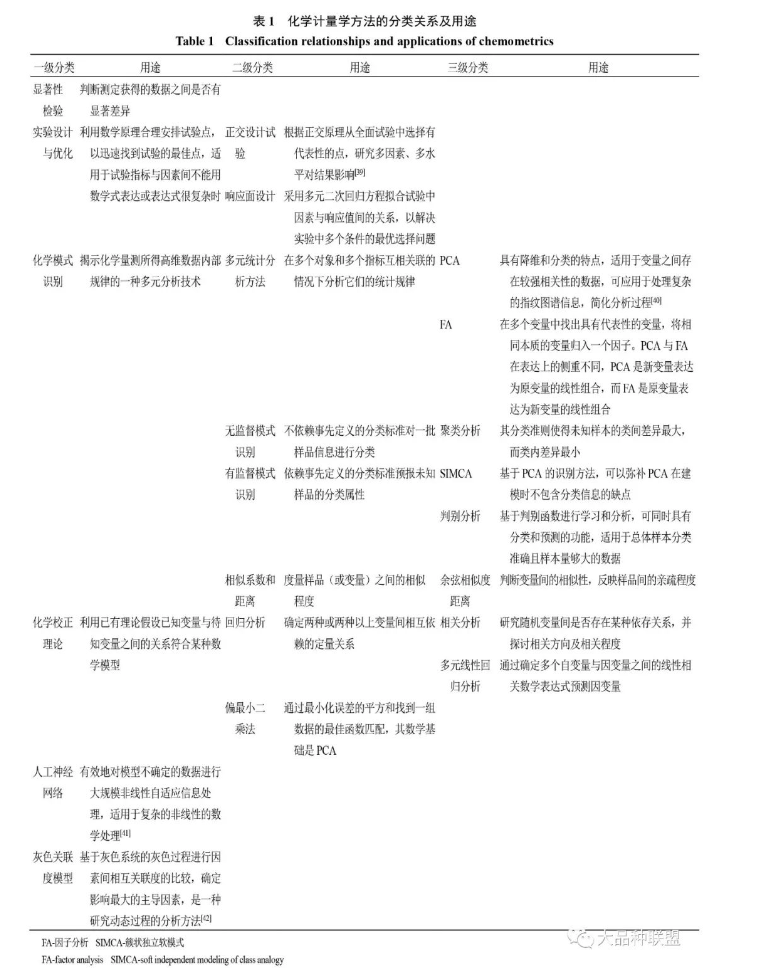 化學計量學在復雜分析中已經(jīng)具有廣泛的應用,是一種處理色譜信息等高維數(shù)據(jù)的強有力的工具和手段,特別適用于中草藥這樣的復雜分析體系,已經(jīng)成功用在包含代謝組學等方向的中藥藥效物質(zhì)基礎(chǔ)研究領(lǐng)域,近年來,化學計量學方法不斷發(fā)展,其在中藥感官評價中的應用前景也更加廣泛。