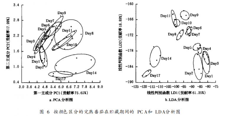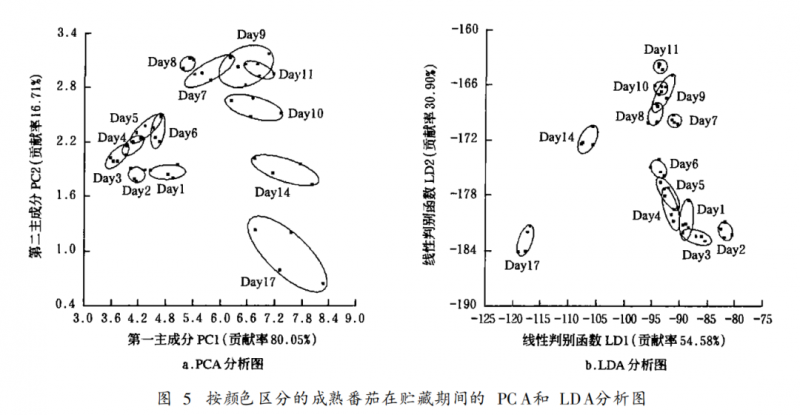 成熟期番茄在貯藏中的電子鼻檢測(cè)分析