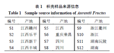 12批枳殼樣品購于甘肅中天藥業有限責任公司,具體樣品批次信息見表1,經南京中醫藥大學藥學院陳建偉教授鑒定,確定樣品來源為蕓香科植物酸橙C. aurantium L.的干燥未成熟果實。