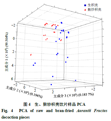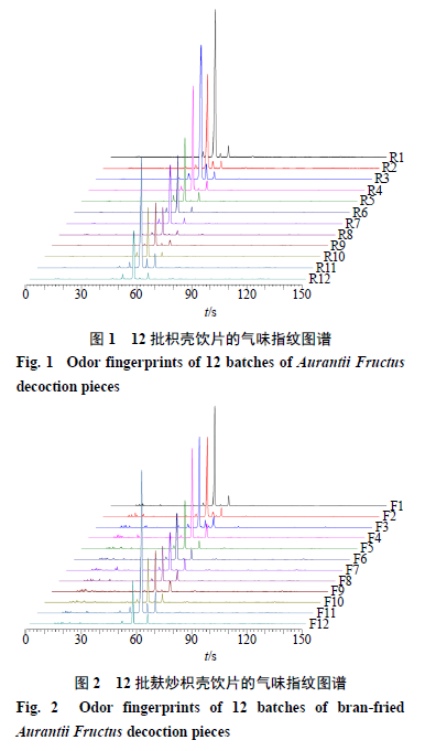本研究基于Heracles NEO超快速氣相電子鼻技術結合Arochembase數據庫比對分析,采用氣味指紋圖譜、多變量統計分析方法對枳殼麩炒前后氣味差異標志物進行快速識別,以期從氣味上快速鑒別生、麩炒枳殼飲片,為生、麩炒枳殼飲片的質量控制提供參考。