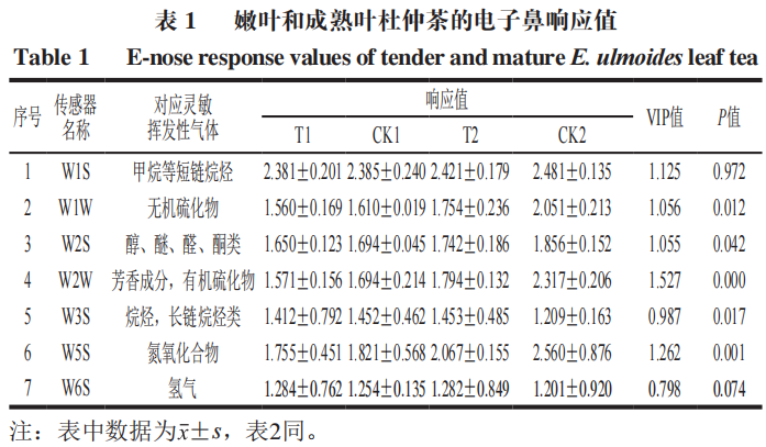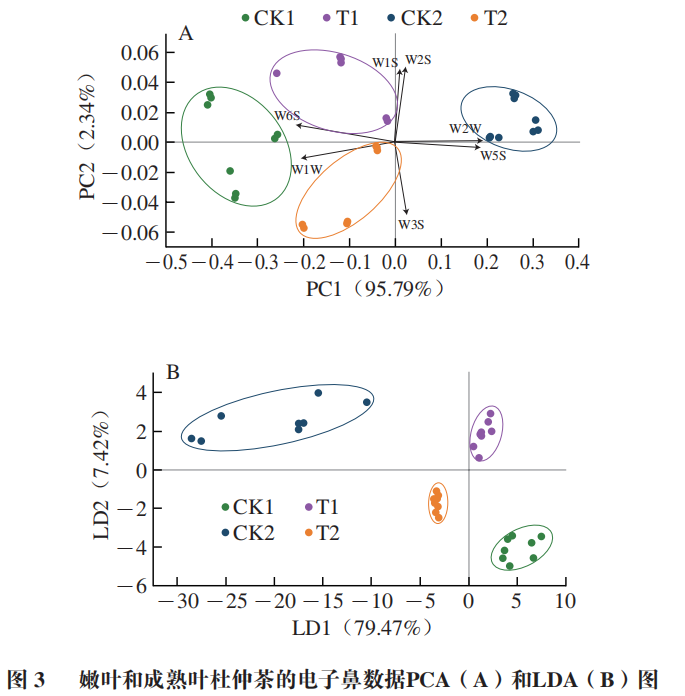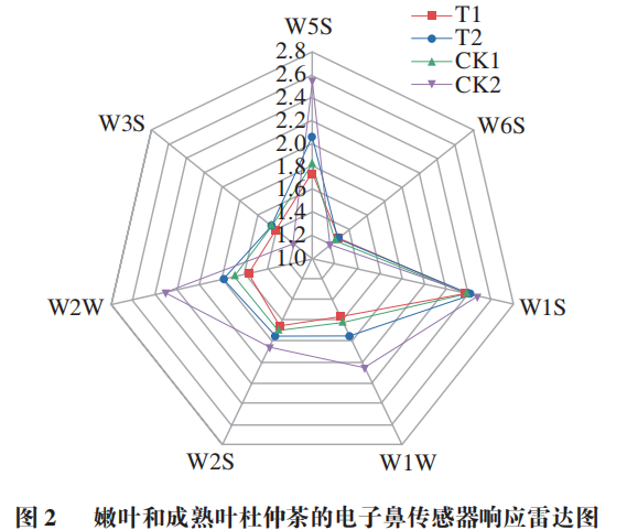 電子鼻分析蒸汽爆破對杜仲嫩葉和成熟葉茶香氣特征的影響