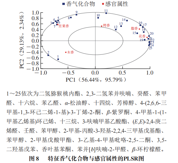 3.3 特征香氣化合物與感官評定之間的相關性分析