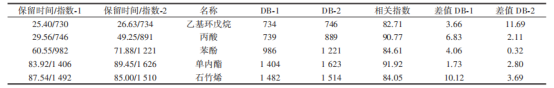 圖4是熱風烘干黃花電子鼻的色譜圖,表5為電子鼻特征數據。由表5可以看出,熱風烘干黃花揮發性風味物質有烷烴類、酯類、烯類等。