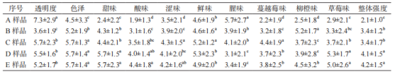 表1 不同口味膠原蛋白固體飲料的感官描述詞匯表2定量描述分析結果