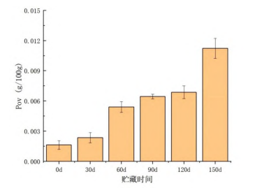 表2 預制紅燒肉凍藏過程硬度變化預制紅燒肉凍藏過程氧化程度變化