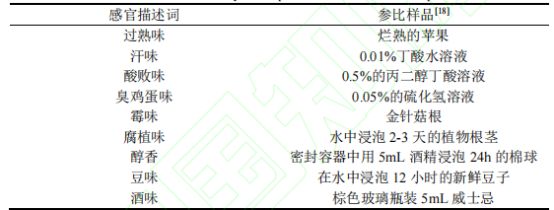 表1 感官描述詞及其參比樣品